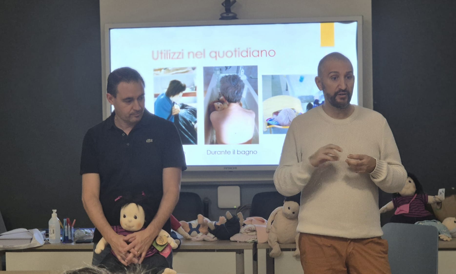 Durante la giornata sono stati realizzati anche laboratori pratici, in cui i partecipanti hanno potuto sperimentare direttamente le modalità di utilizzo della bambola nella relazione di cura, scoprendone la delicatezza e la potenza comunicativa.